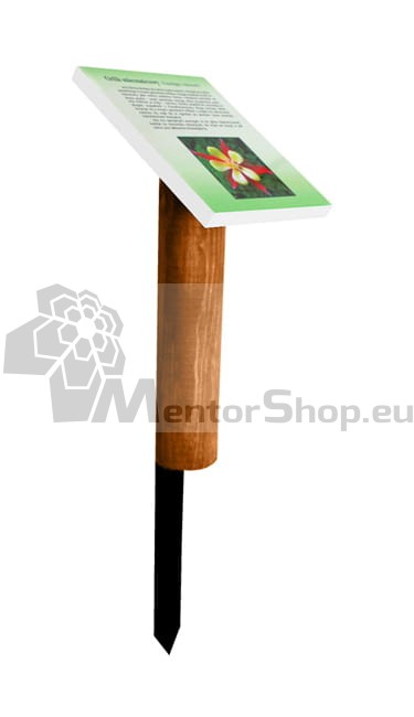 Drevený stojan s mini informačnou tabuľou určený na označovanie rastlinných druhov. Vhodný na použitie v záhradách, parkoch, arborétach, na školských dvoroch alebo na náučných chodníkoch.